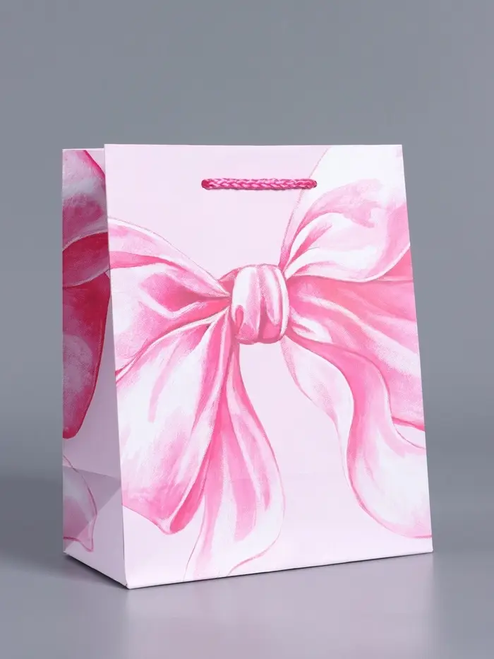 Пакет подарочный "Розовый бант" ламинированный 18 х 22,3 х 10 см