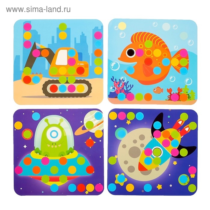 Задача малыша: вкручивать болтики и собирать картинки с помощью игровых полей и красочных фигурок.