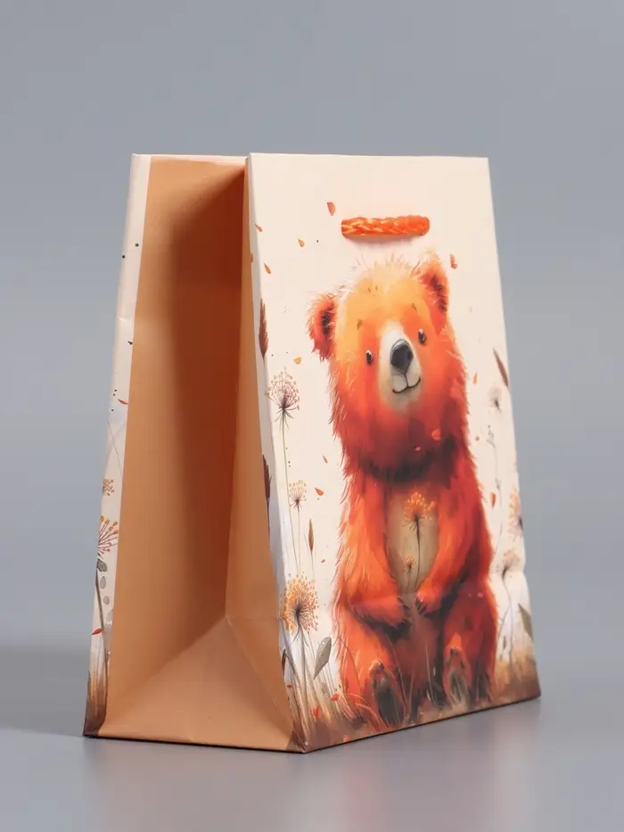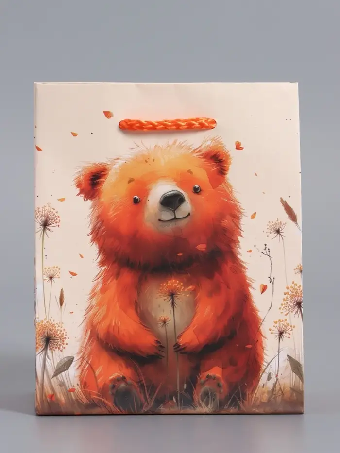 Пакет подарочный "Мишка в поле" ламинированый 11,5 х 14,5 х 6,5 см