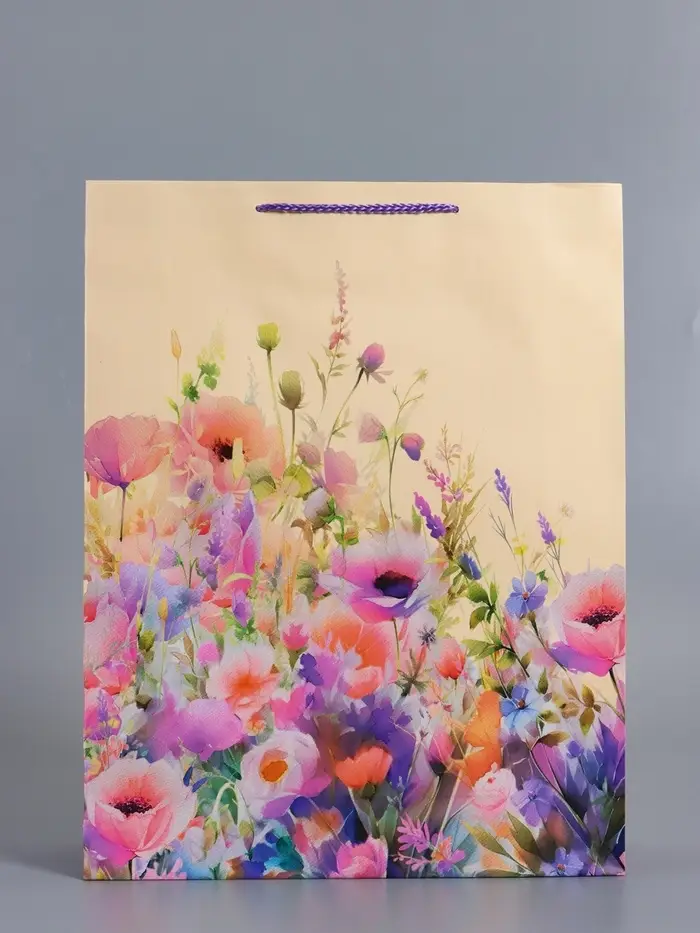 Пакет подарочный "Полевые цветы", ламинированный, 33 х 42,5 х 10 см