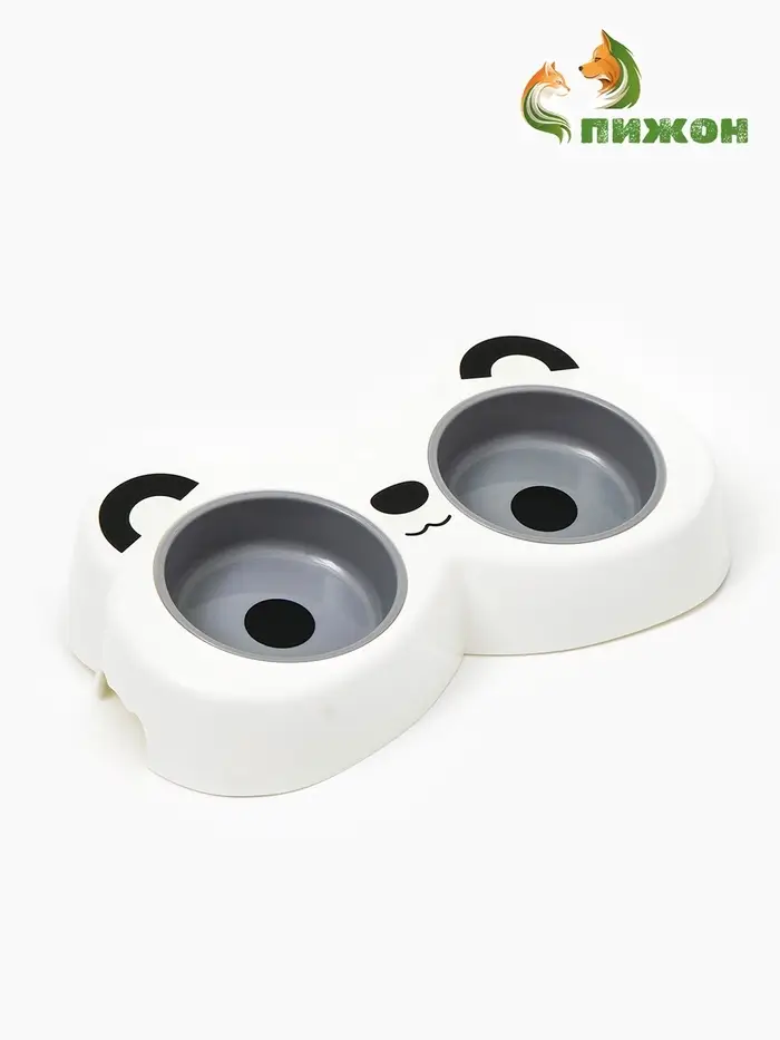 Миска двойная «Панда», 2×160 мл, пластик, белая, серая