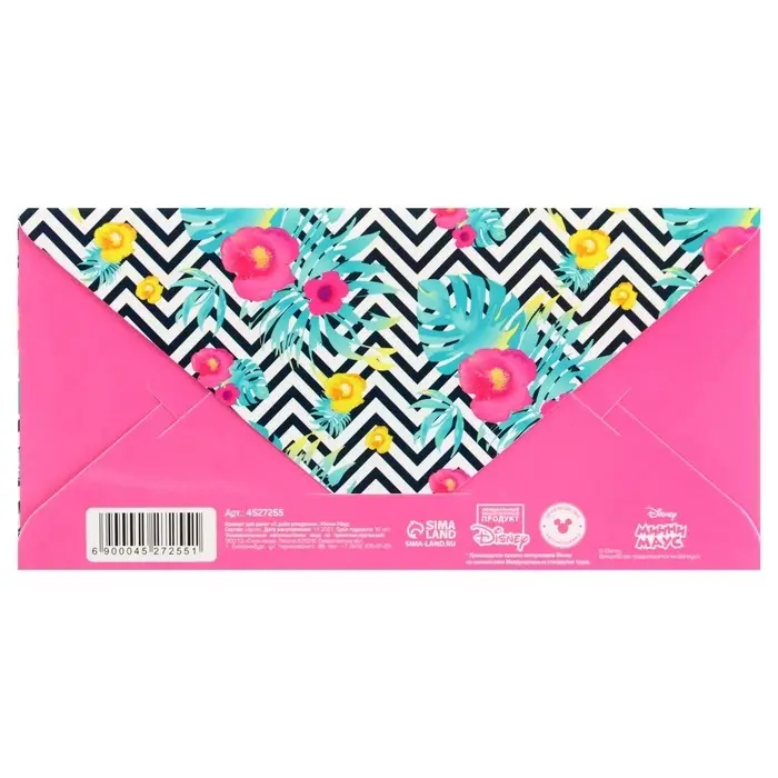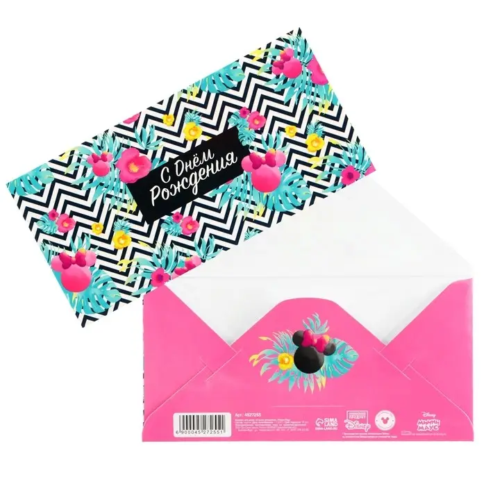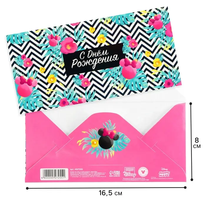 Конверт для денег, 16.5 х 8 см «С днём Рождения», Минни Маус