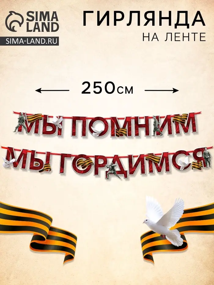 Гирлянда на ленте к 9 Мая «Мы помним», 250 см