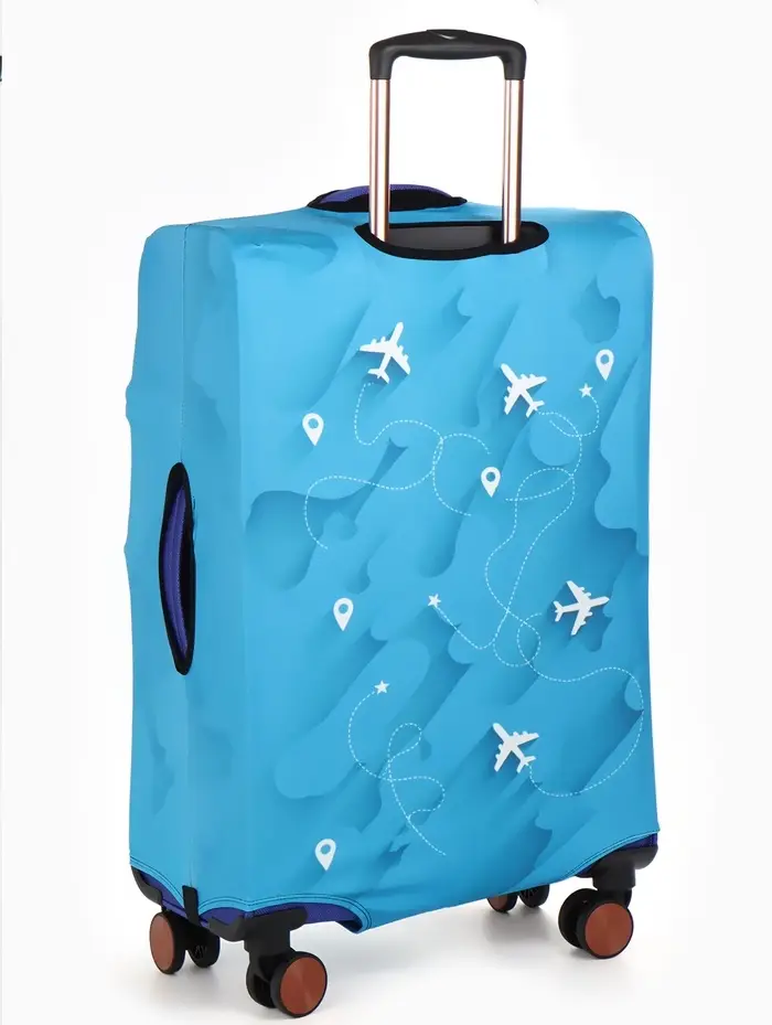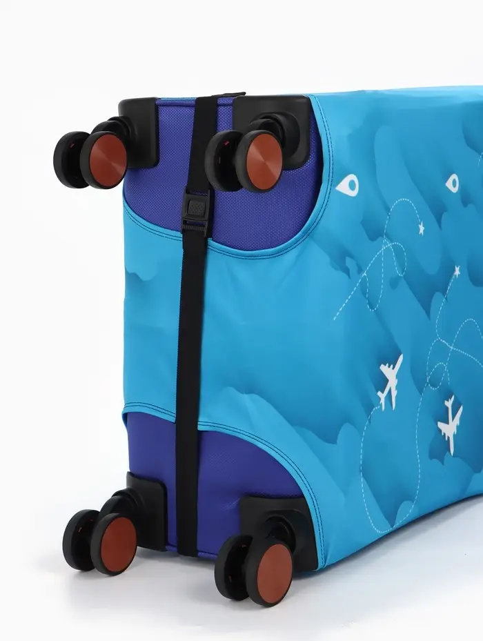 Этот голубой чехол с рисунком самолётов — надёжный защитник для вашей ручной клади в путешествиях. Он создан для чемодана размера S (20 дюймов) и станет его ярким и практичным аксессуаром.