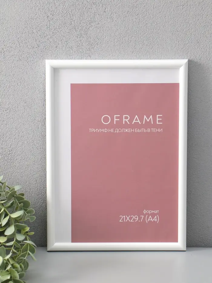 Фоторамка для фото 21х29,7 см (А4) "Oframe", пластик, белый, (пластиковый экран)