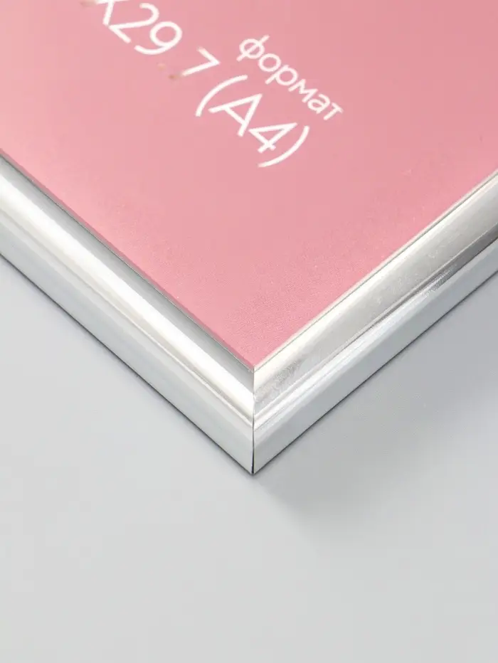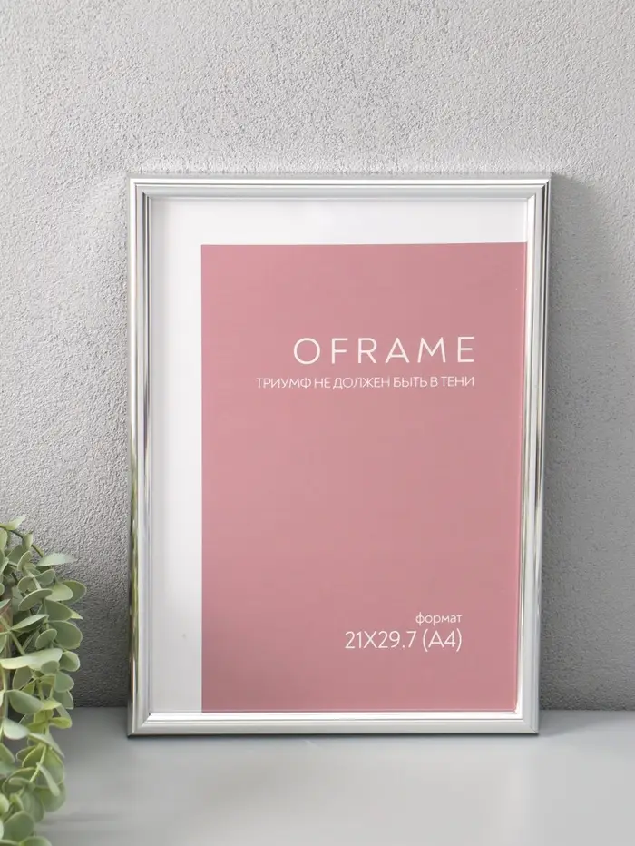 Фоторамка для фото 21х29,7 см (А4) "Oframe", пластик, серебро, (пластиковый экран)