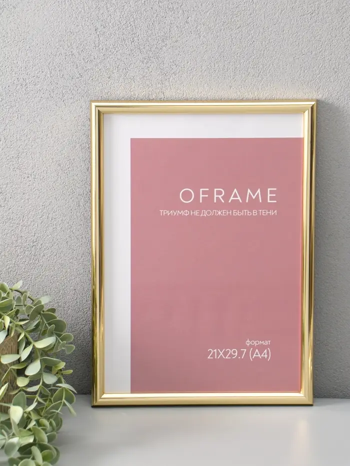 Фоторамка для фото 21х29,7 см (А4) "Oframe", пластик, золото, (пластиковый экран)