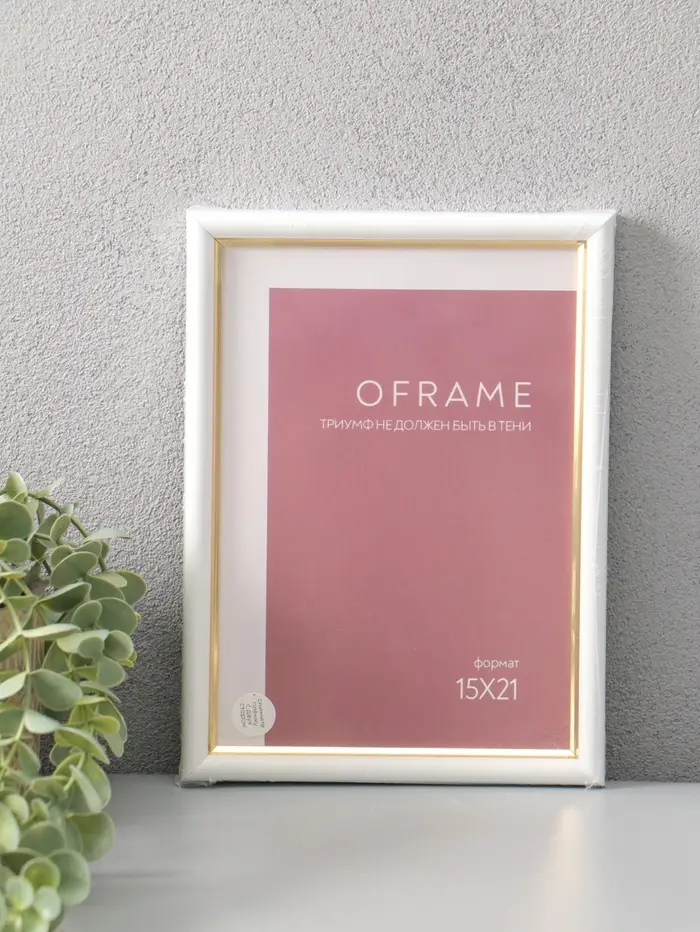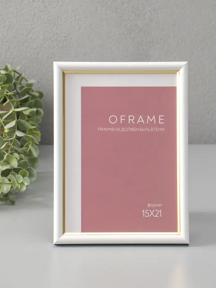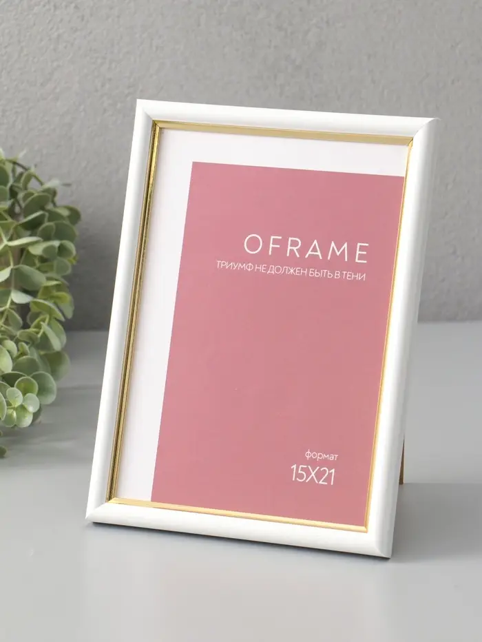 Фоторамка для фото 15х21 см "Oframe", пластик, белый с золотом, (пластиковый экран)