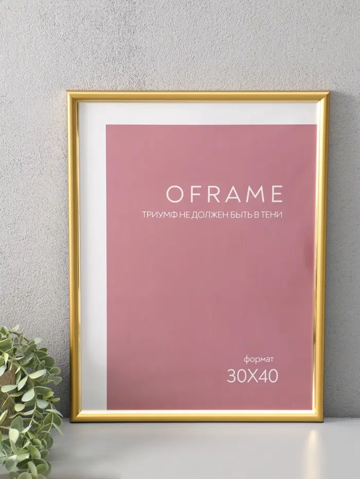 Фоторамка для фото 30х40 см "Oframe", пластик, золотой, (пластиковый экран)