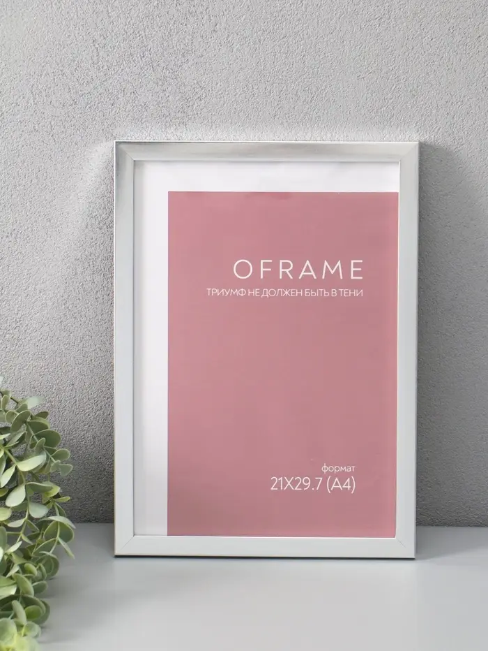 Фоторамка для фото 21х29,7 см (А4) "Oframe", пластик, серебро, (пластик экран)