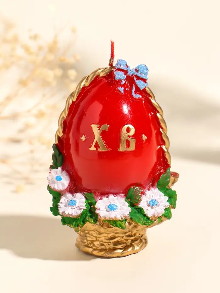 Свеча декоративная "Пасхальное яйцо в корзинке" 7х10,5 см, 130 гр