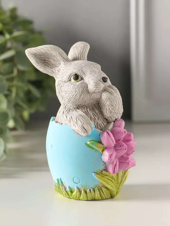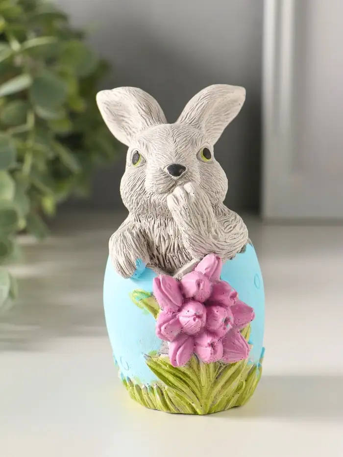 Статуэтка "Заяц пасхальный с букетом" 11х6 см, цветной