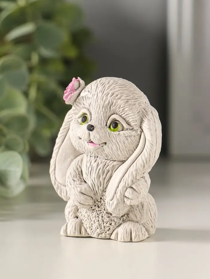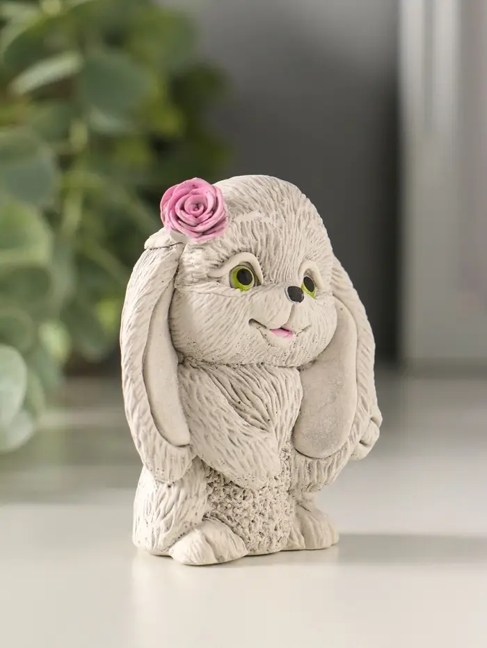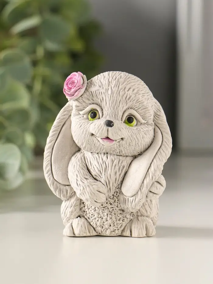 Статуэтка "Кролик с цветком" 7х5х4 см, серый