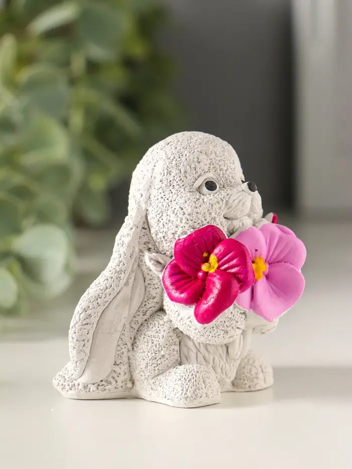 Статуэтка "Кролик с анютиными глазками" 6х6х4, цветной
