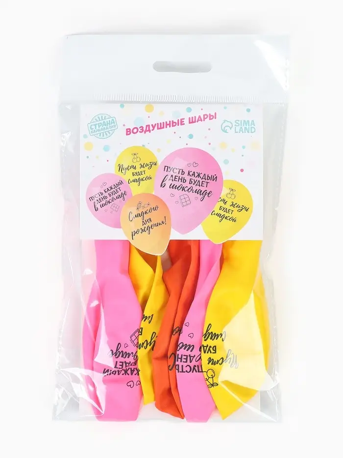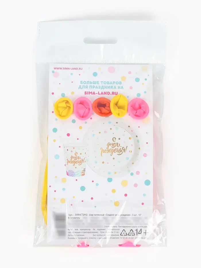 Воздушный шар латексный 12" «Сладкий день рождения», набор 5 шт.