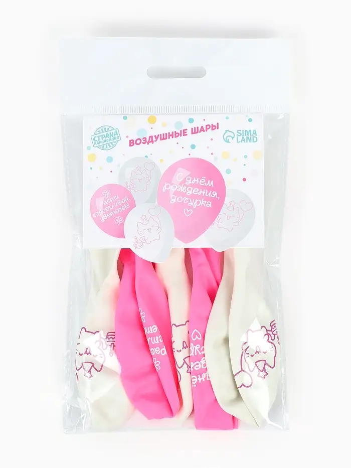 Воздушный шар латексный 12" «С днём рождения, доченька», 5 шт.