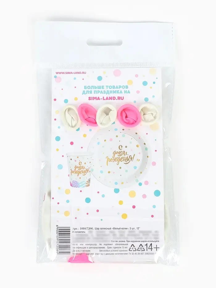 Воздушный шар латексный 12" «Милый котик», набор 5 шт.