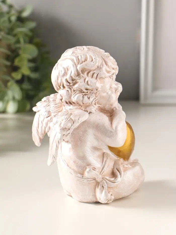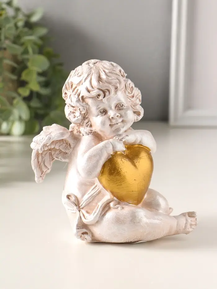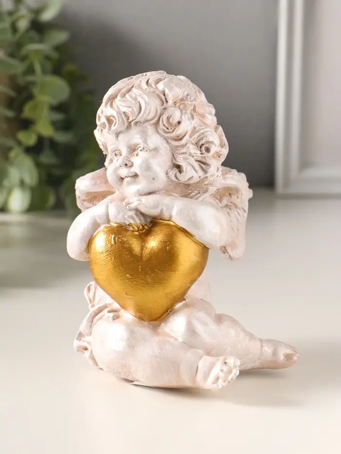 Фигура полистоун "Ангелочек с сердцем сидит" 14х13х10 см