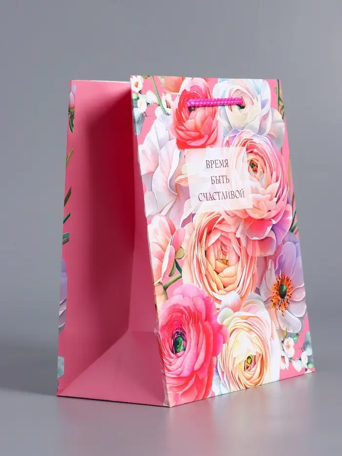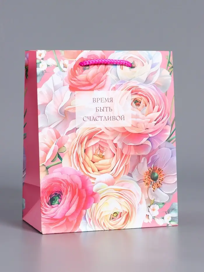 Пакет подарочный "Время быть счастливой" ламинированный 18 х 22,3 х 10 см