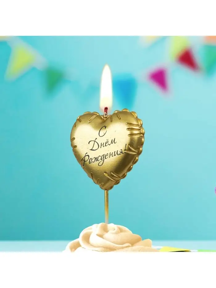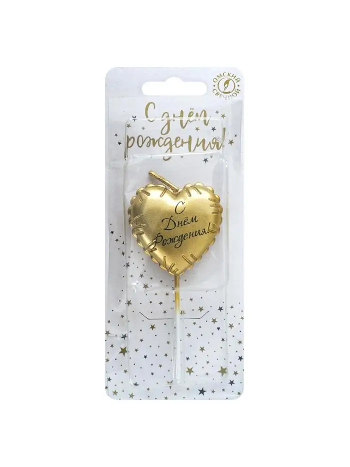 Свеча в торт " Воздуный шарик. С Днем Рождения. Сердечко", золотая