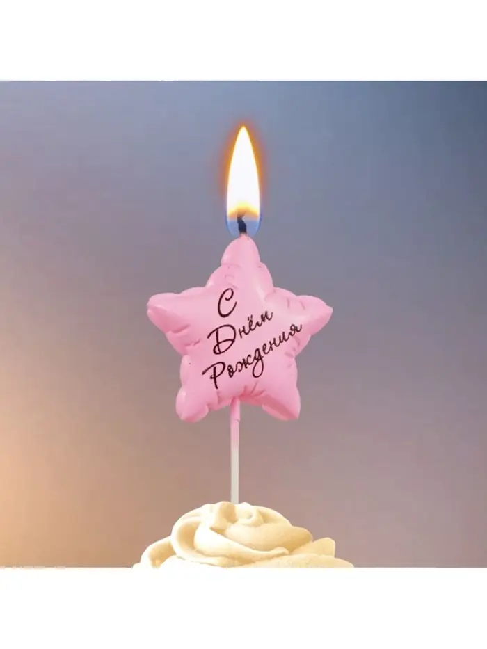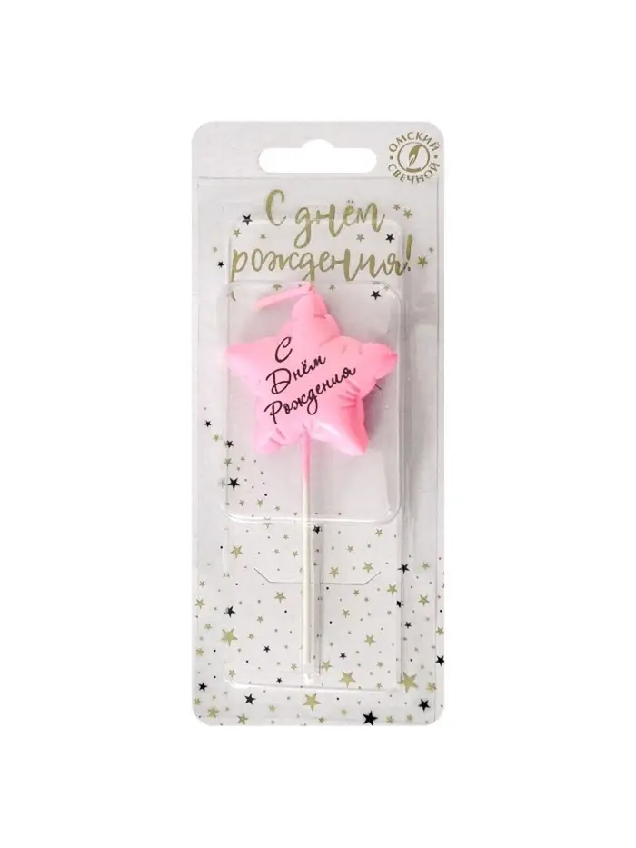 Свеча в торт " Воздуный шарик. С Днем Рождения. Звездочка", розовая