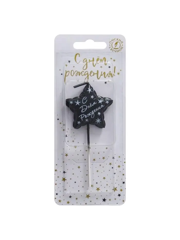 Свеча в торт " Воздуный шарик. С Днем Рождения. Звездочка", черная