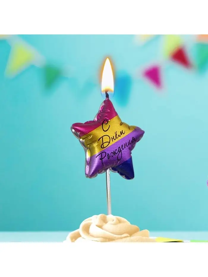 Свеча в торт " Воздуный шарик. С Днем Рождения. Звездочка", цветная