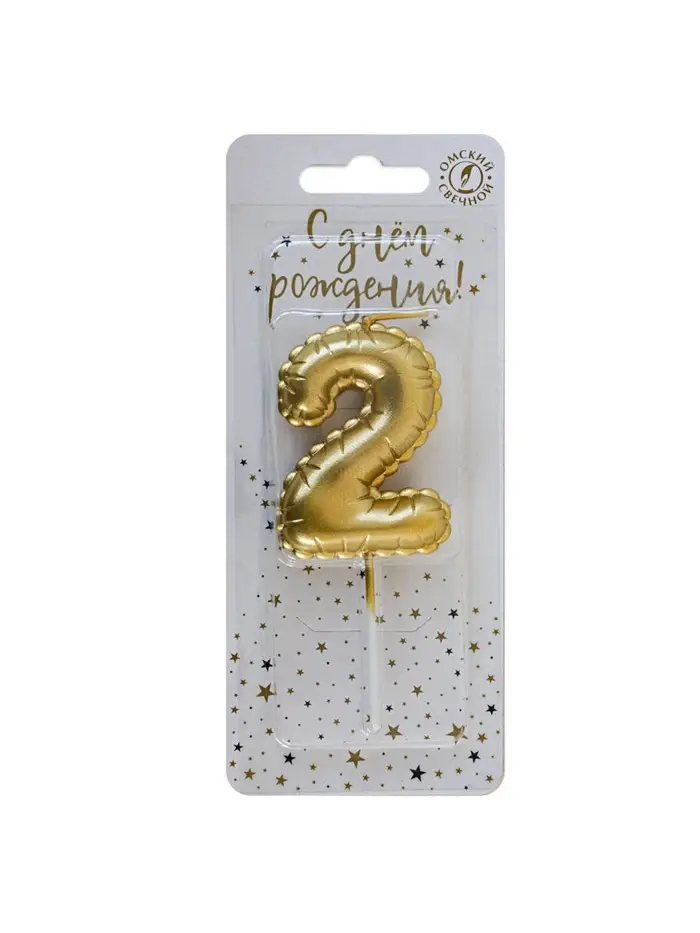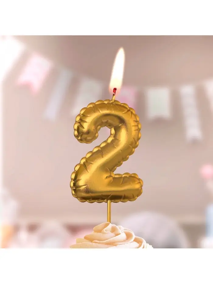 Свеча в торт на шпажке "Воздушая цифра", цифра "2", золото