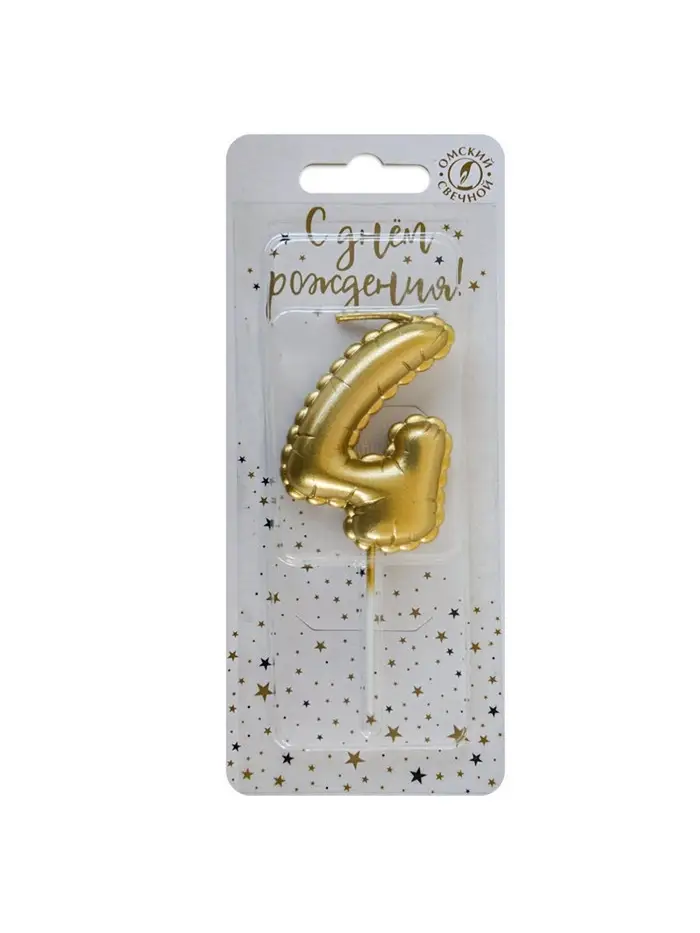 Свеча в торт на шпажке "Воздушая цифра", цифра "4", золото