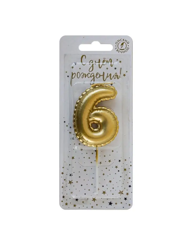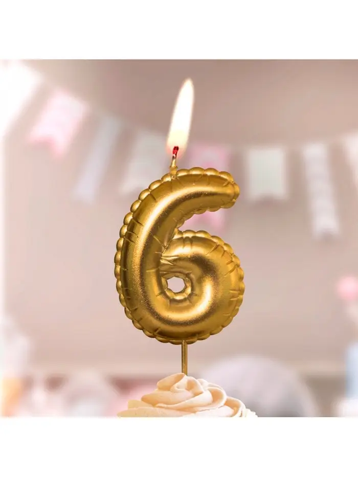 Свеча в торт на шпажке "Воздушая цифра", цифра "6", золото