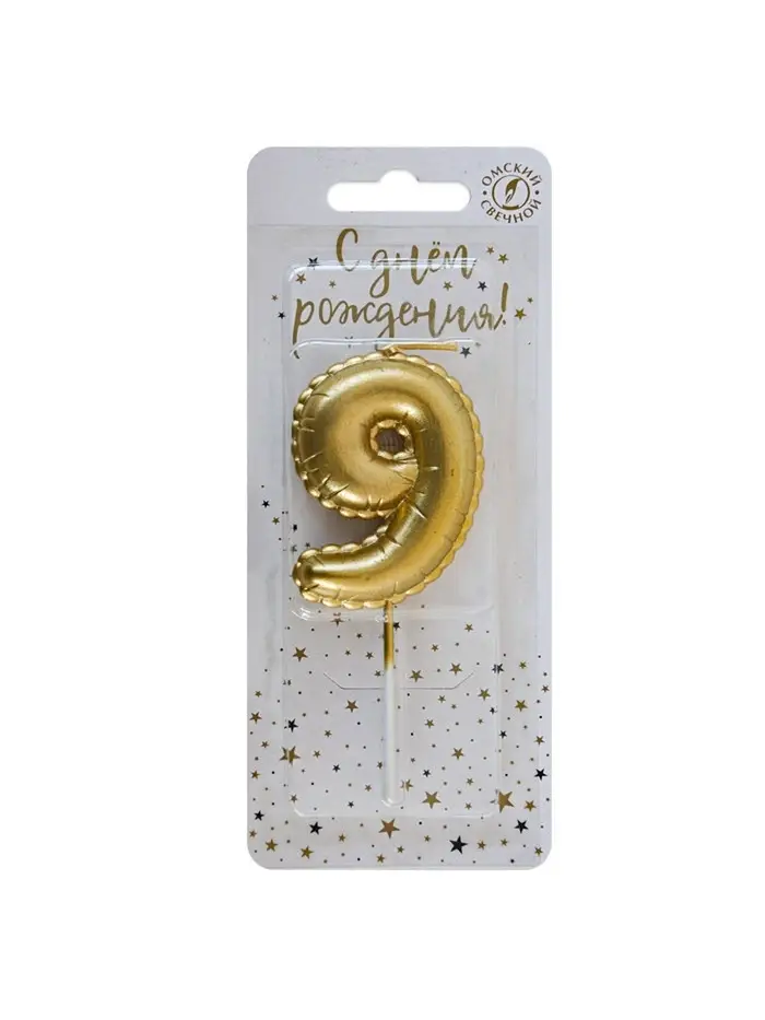 Свеча в торт на шпажке "Воздушая цифра", цифра "9", золото