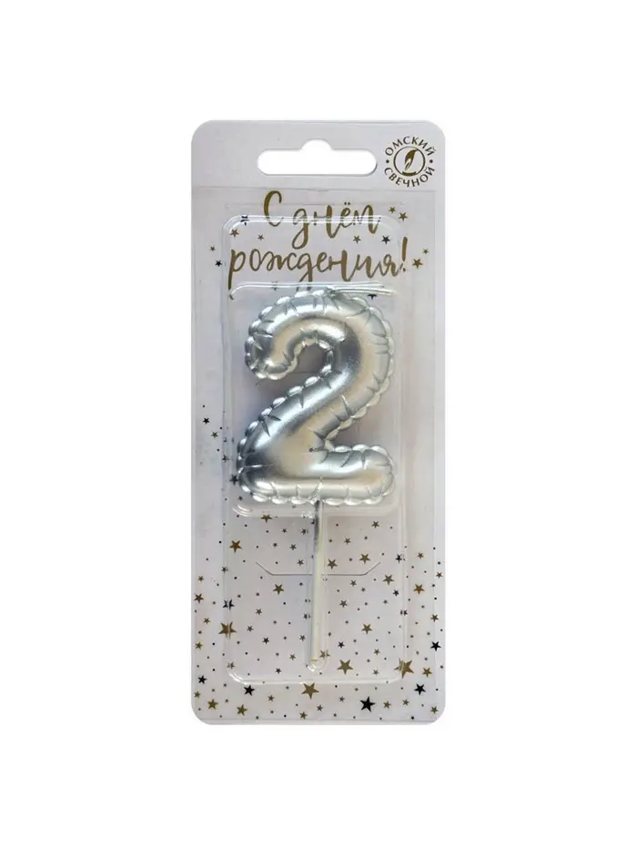 Свеча в торт на шпажке "Воздушая цифра", цифра "2", серебро
