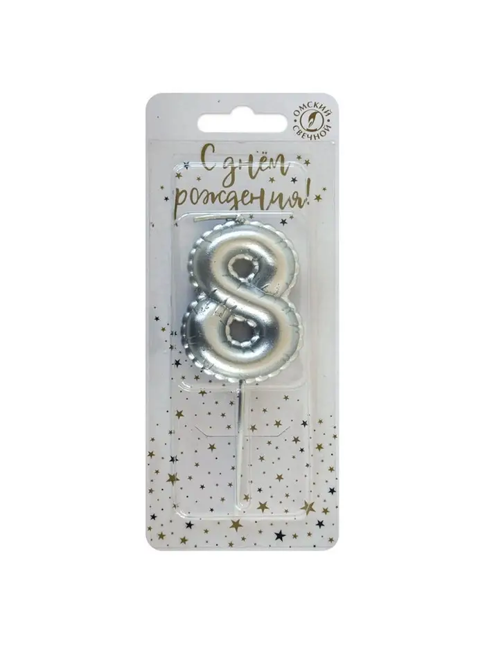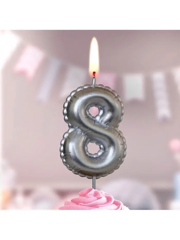 Свеча в торт на шпажке "Воздушая цифра", цифра "8", серебро
