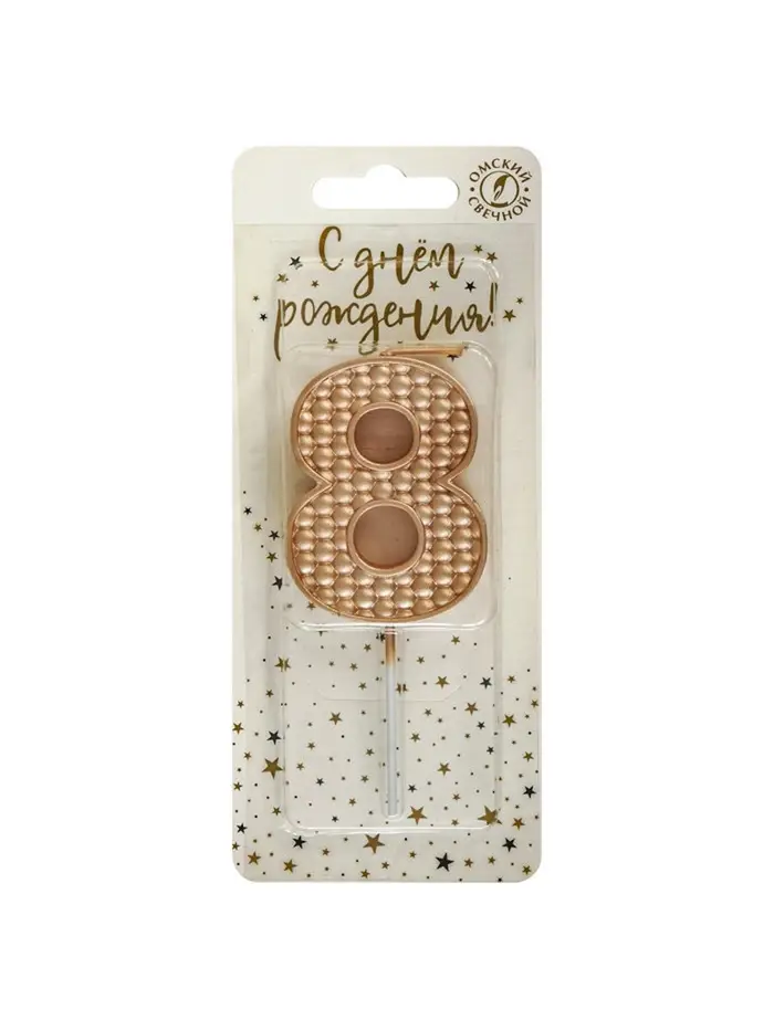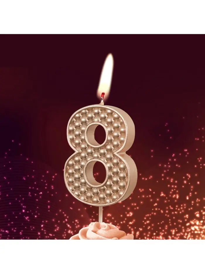 Свеча в торт на шпажке "Жемчужная", цифра "8", шампань