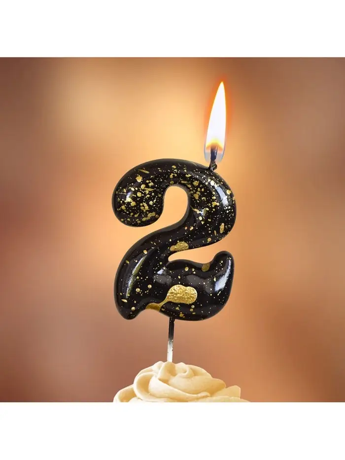 Свеча в торт "Черные брызги", цифра "2"