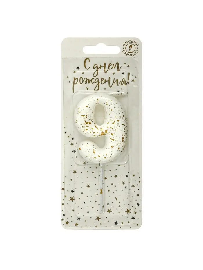 Свеча в торт "Белые брызги", цифра "9"