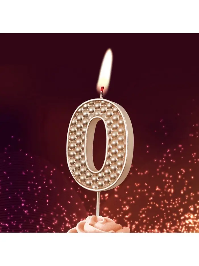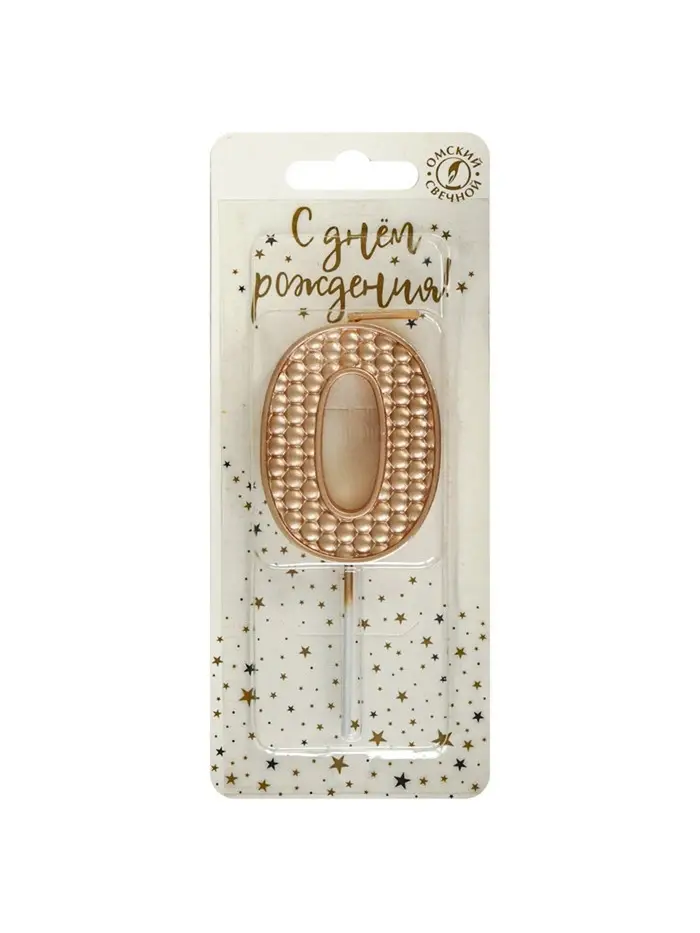 Свеча в торт на шпажке "Жемчужная", цифра "0", шампань