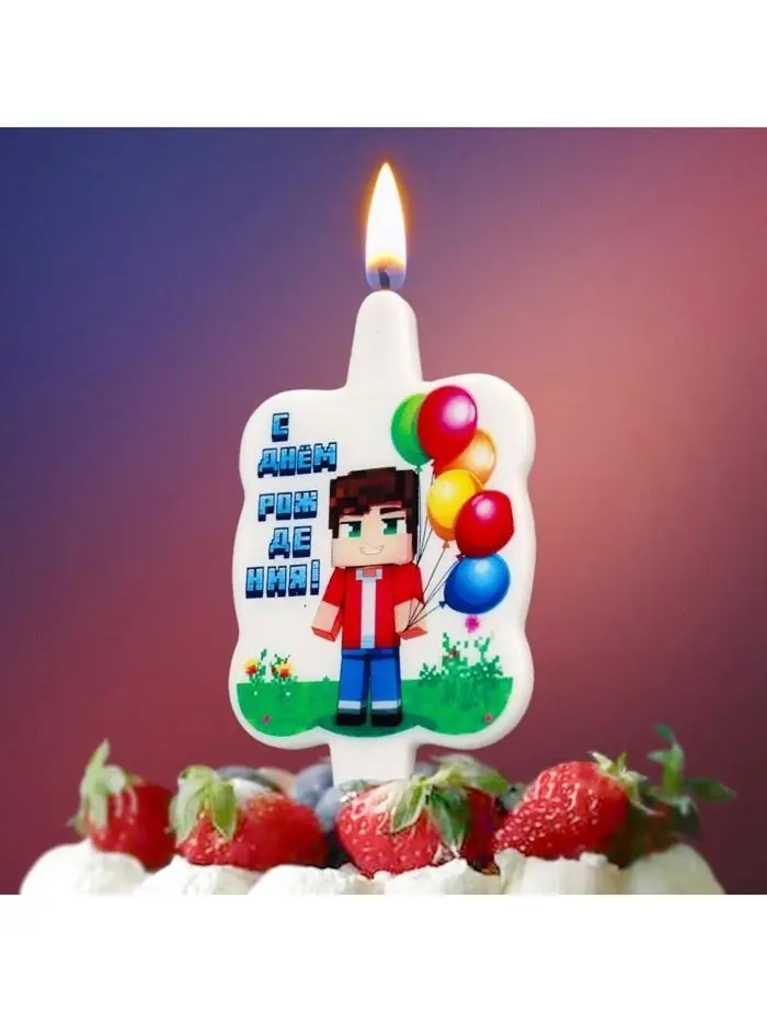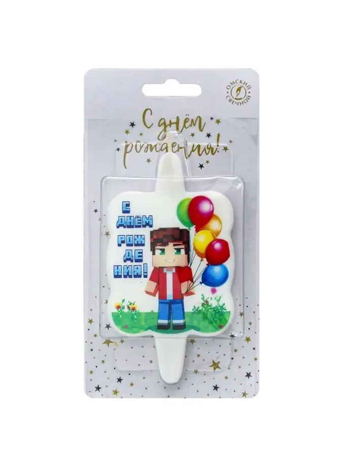 Свеча в торт " Майнкрафт. С Днем Рождения. Мальчик с шарами"
