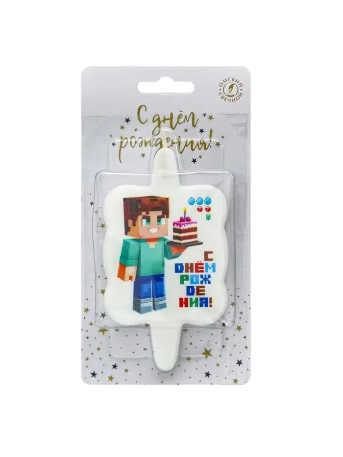Свеча в торт " Майнкрафт. С Днем Рождения. Мальчик с тортом"