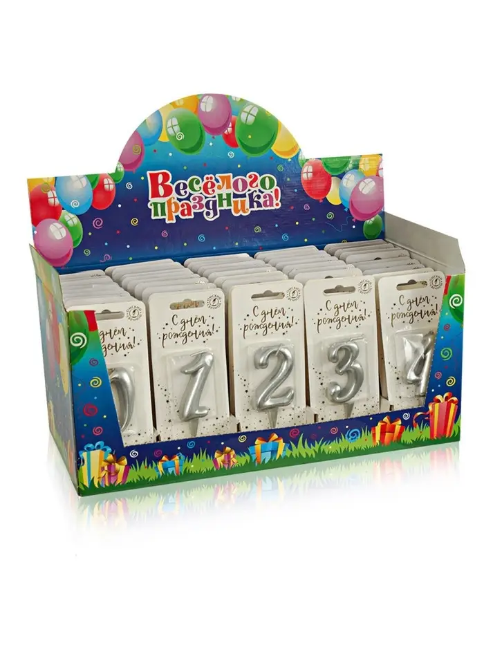 Шоу-бокс со свечами для торта цифры "Серебряная", 50 штук