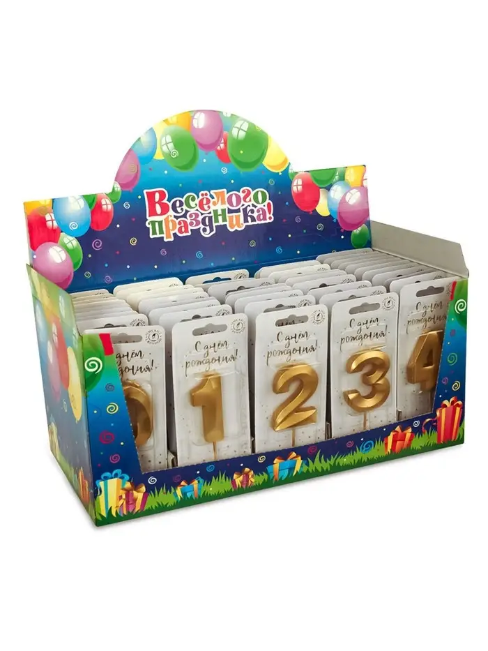 Шоу-бокс со свечами для торта цифры "Золотые витые"