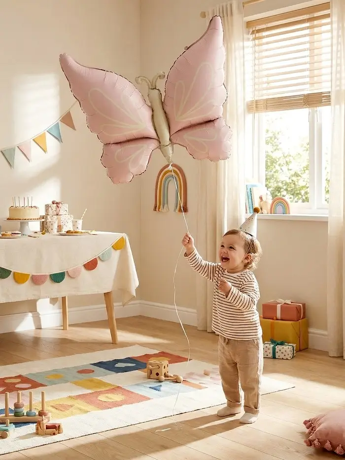 Воздушный шар фольгированный 37" "Нежная бабочка" розовый сатин