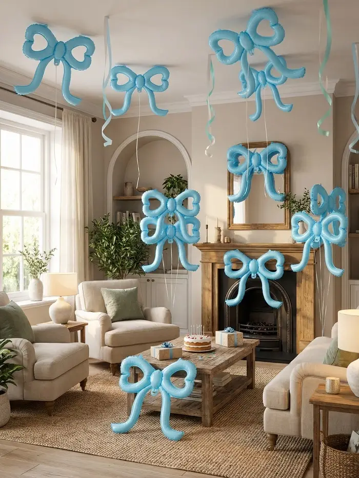 Воздушный шар фольгированный 22" "Бант" цвет голубой сатин