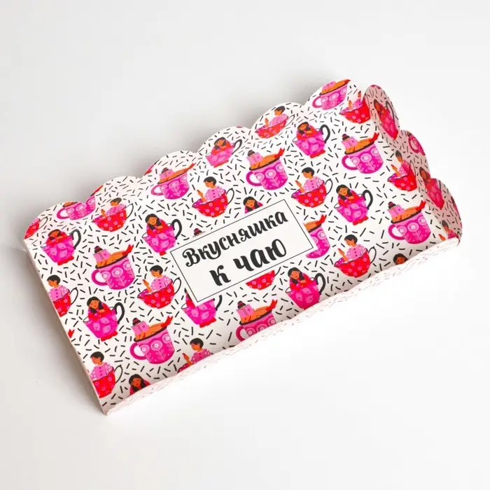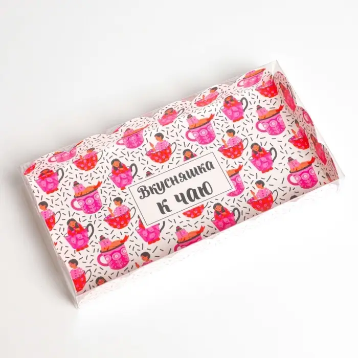 Коробка для печенья, кондитерская упаковка с PVC крышкой, «Вкусняшка к чаю», 10.5 х 21 х 3 см
