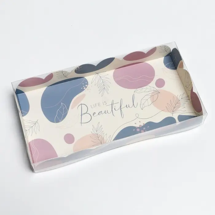 Коробка для печенья, кондитерская упаковка с PVC крышкой, «Абстракция», 10.5 х 21 х 3 см