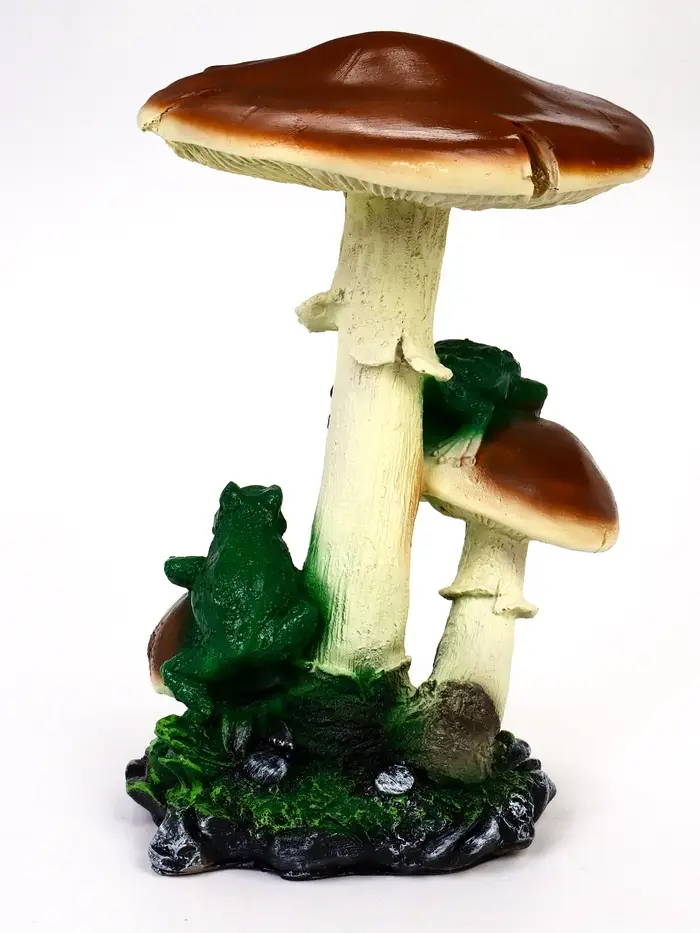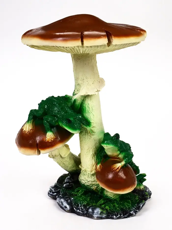 Садовая фигура 43 х_ х _ см зеленый полистоун Гриб тройной с двумя лягушками