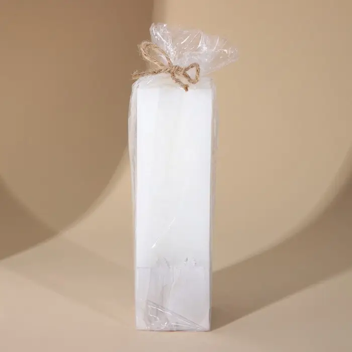 Свеча упакована в прозрачный пакет с декоративной веревкой - отличный вариант для новогоднего подарка!