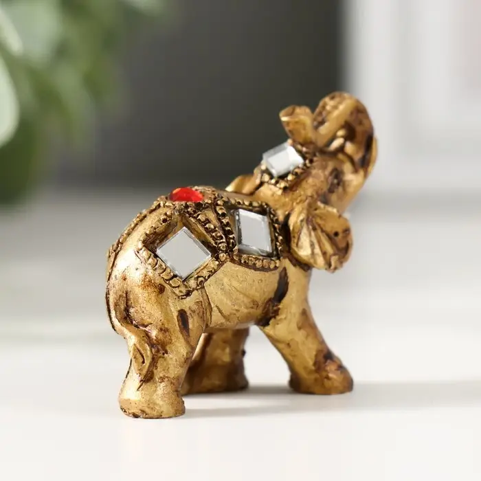 Сувенир полистоун "Маленький слон с мозаикой зеркальной и рубином на попоне" 3,8х3,5х1,8 см 544919