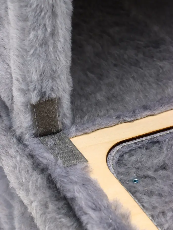 Для кого этот комплекс: для взрослых кошек, ценящих тишину и личное пространство, — уютное гнездо с бортами. Для котят и активных молодых питомцев — когтеточка, полка и игрушка. Для хозяев — минимум следов на мебели и максимум спокойствия: питомец занят, доволен и знает, где его территория.