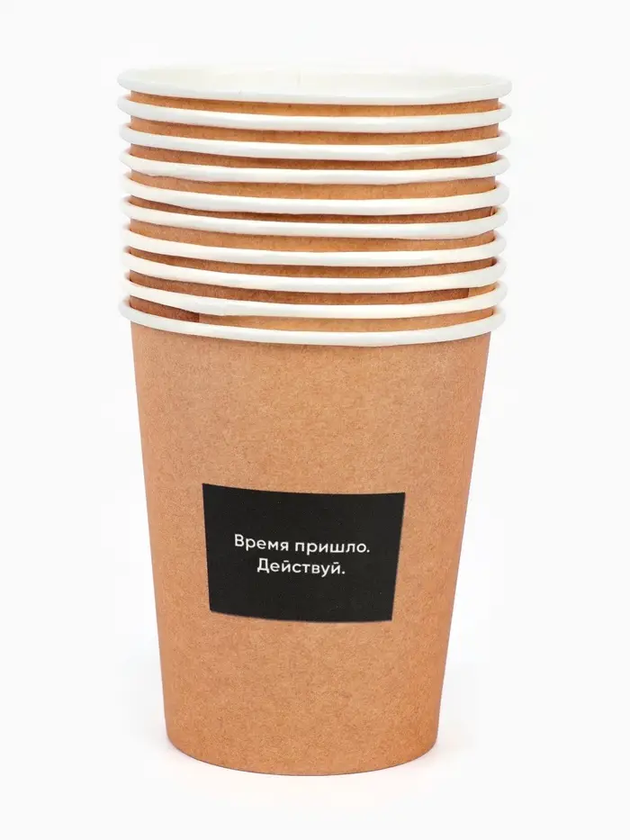 МП Набор стаканов одноразовых бумажных для кофе "Действуй", под крафт, 10 шт, 250 мл